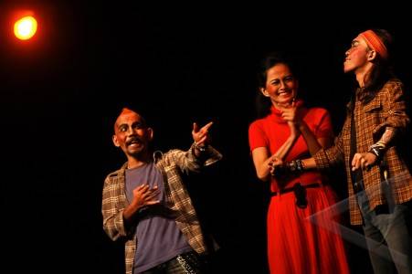 Salah satu adegan pementasan teater "Mastodon dan Burung Kondor" karya WS Rendra di Graha Sanusi Universitas Padjadjaran (Unpad) Bandung, Jawa Barat, Kamis (12/1) malam. (FOTO ANTARA/Agus Bebeng/Koz/Spt/12)