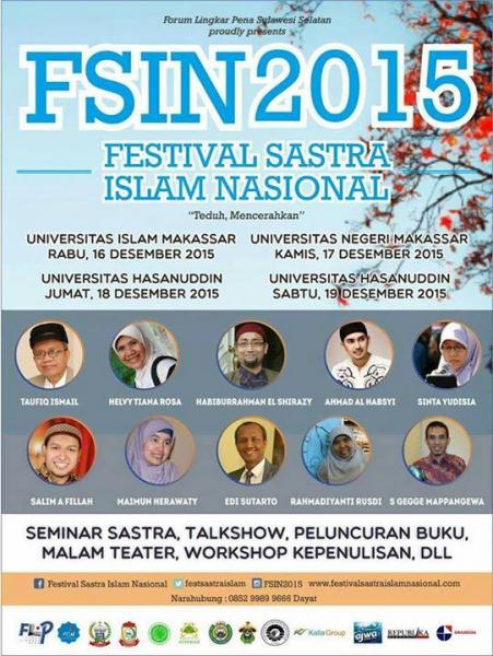 Dalam rangka pelaksanaan FSIN 2015, Forum Lingkar Pena Makassar sebagai pelaksana sudah menggelar soft opening dengan melaksanakan semnar dan workshop kepenulisan yang bertema Sastra dalam Perkembangan Islam di Universitas Islam Makassar (UIM), Makassar, Sulawesi Selatan.